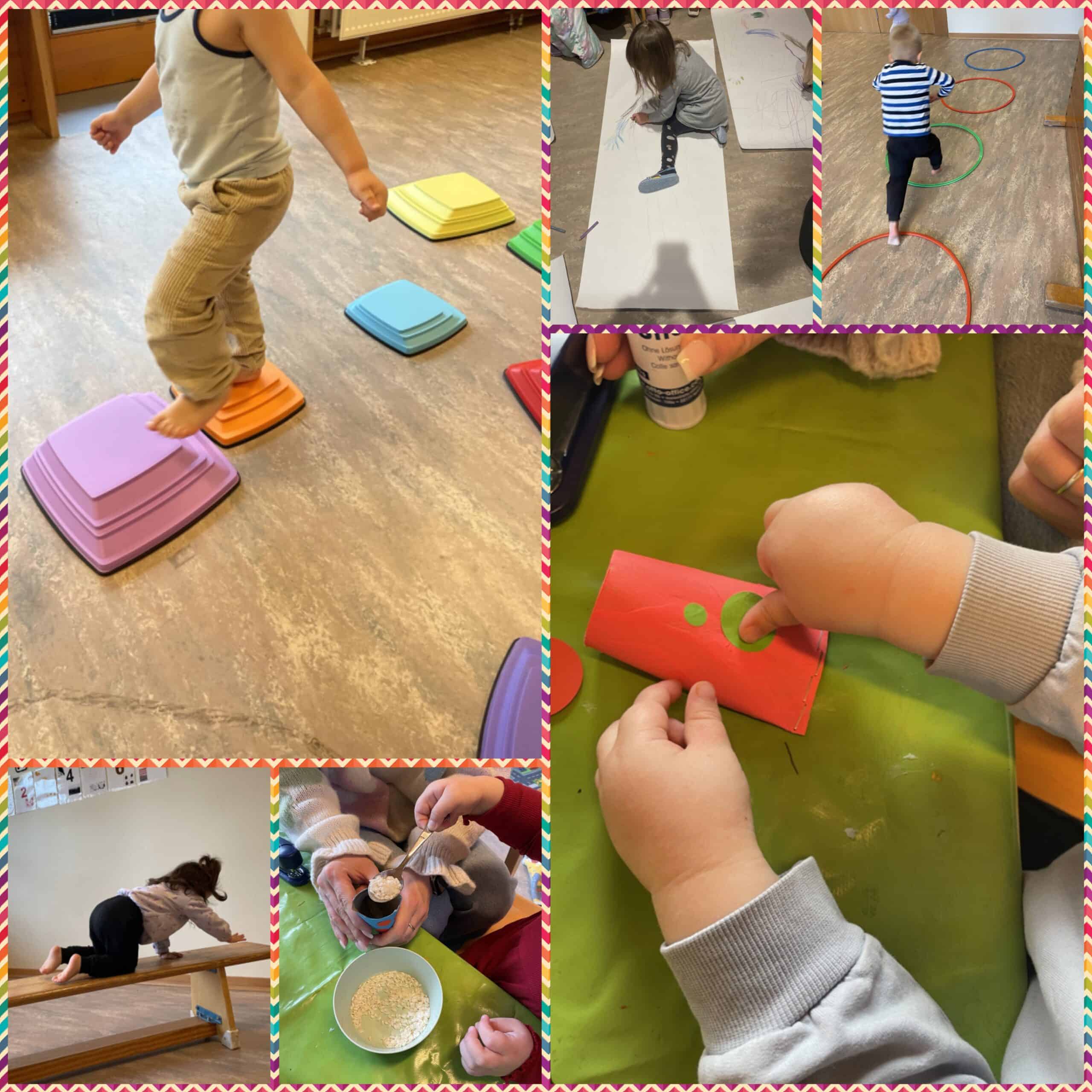 Zu Beginn beschäftigen wir uns gemeinsam damit, wie unser Körper aufgebaut ist und was er alles kann. Im täglichen Morgenkreis, bei verschiedenen Bewegungsspielen, kleinen Ausflügen und in kreativen Angeboten lernen die Kinder spielerisch ihren Körper kennen. Ab der zweiten Woche widmen wir uns dann jede Woche einem Sinn. Beim Thema Sehen erforschen wir Farben, Formen und Licht. In der Hör-Woche entdecken wir Geräusche, Klänge und Musik. Beim Fühlen stehen Tastspiele, unterschiedliche Materialien und die eigene Körperwahrnehmung im Mittelpunkt. Zum Abschluss verbinden wir Riechen und Schmecken mit kleinen Experimenten und gemeinsamen Aktionen beim großen Osterfrühstück in jeder Gruppe.