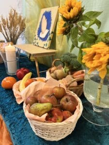 Anfang Oktober haben wir in der Kita Regenbogen gemeinsam mit den Kindern und Erzieherinnen einen schönen Erntedank-Gottesdienst gefeiert. Begleitet wurde dieser von Pastorin Mandy Morgenthal,